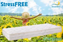 Dokonalé odvetranie matraca zabezpečuje na bočnej strane 3D biely pásik s logom StressFree. Jadro matraca je z tvrdej ortopedickej DreamPUR peny.